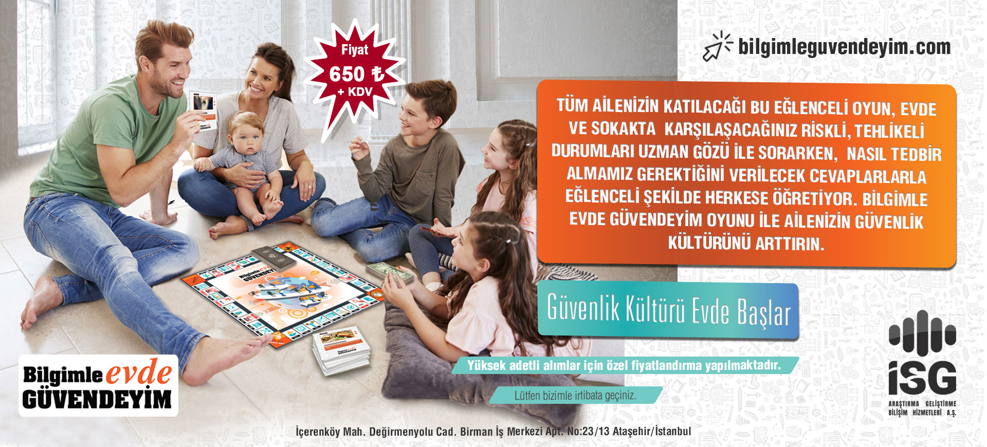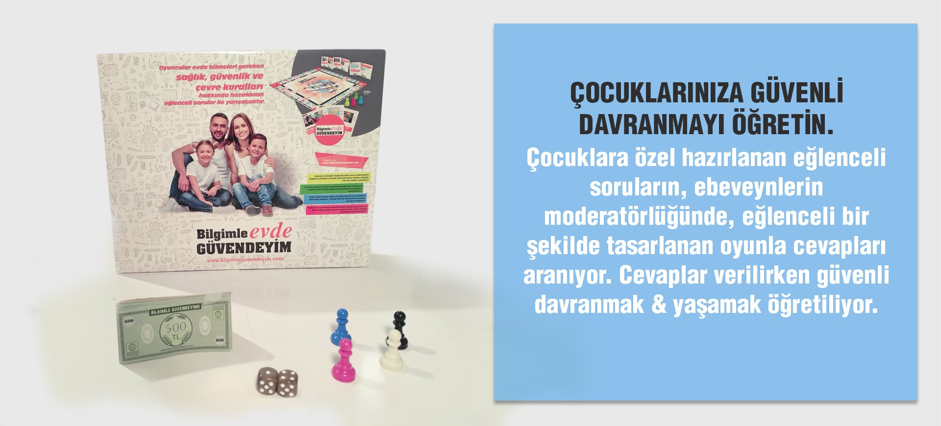 Tüm ailenizin katilacağı bu eğlenceli oyun, Evde, sokakta yada okulda karşılaşacağınız riskli, tehlikeli durumları uzman gözü ile sorarken, nasıl tedbir almamız gerektiğini verilecek cevaplarlarla eğlenceli şekilde herkese öğretiyor. Bilgimle Evde Güvendeyim oyunu ile ailenizin güvenlik kültürünü arttırın...