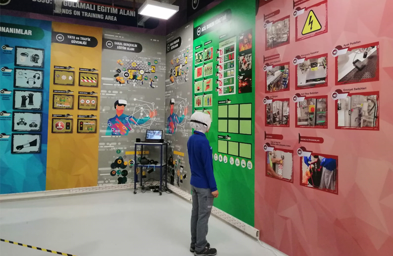 Tesis içerisindeki mevcut alan, salon veya binaların İSG konusunda bir eğitim merkezine veya parkuruna dönüştürülmesini içermektedir. Hem saha içerisindeki atıl alanlar değerlendirilmekte; hem de İSG uygulamalarının daha fazla göz önünde olması sağlanmaktadır. Bu alanlar 3D/2D video, simülasyon, maket, baskı, yazılımlar, oyunlar vb. kullanılarak birer eğitim merkezine dönüştürülmektedir. Eğitmensiz eğitim merkezi konseptiyle geliştirilen projede; çalışanlar kendilerine verilen yönergeleri takip ederek, kendi iş konusuyla ilgili tüm bilgilere ulaşabilmektedir. Tüm aktivitelerde olduğu gibi burada da eğitimin oyunlaştırılması ve ödüllendirme mekanizmaları kurulduğundan, rekabet duygusu eğitimin azami faydayı göstermesini mümkün kılmakta ve eğitmenin (anlatıcının) bulunmadığı akış, çalışanların sıkılmasını, dikkatlerinin dağılmasını önlemektedir.