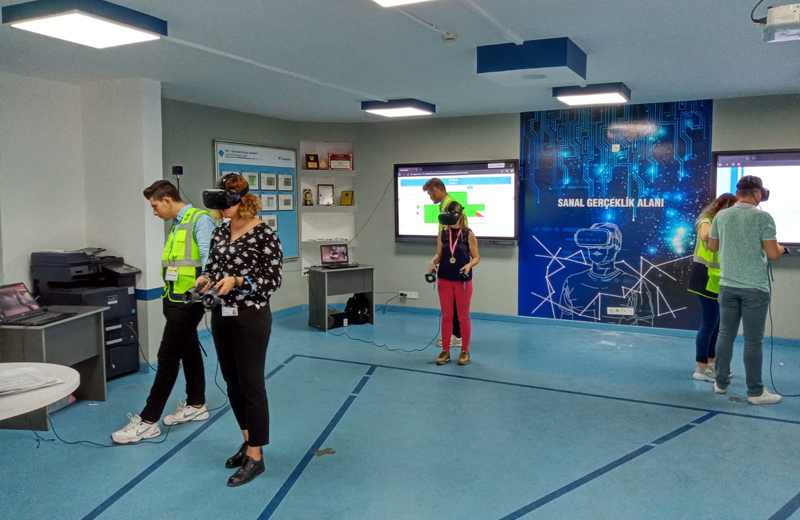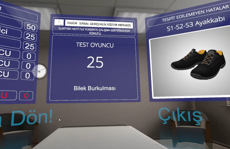 Gelişen teknolojiyi İSG ile ilgili konularda olumlu alışkanlar üretmek için kullandığımız ve Sanal gerçeklik donanımlarıyla gerçekleştirdiğimiz bu uygulamada kurumlarla bir araya gelerek ihtiyaca yönelik senaryolar oluşturmaktayız. Çalışanın, çalışma yapacağı alan sanallaştırılarak önceden gizlenmiş riskleri belli bir süre içerisinde doğru şekilde tespit etmesi beklenmekte, senaryo sonunda ise başarısına göre bir puan almaktadır. Ayrıca, bahsedilen senaryo öncesinde bir de KKD (kişisel koruyucu donanım) seçim sahnesi eklenerek “doğru işte doğru KKD kullanımı” öğretilerek pekiştirilmekte ve sondaki puanlamaya dâhil edilmektedir.