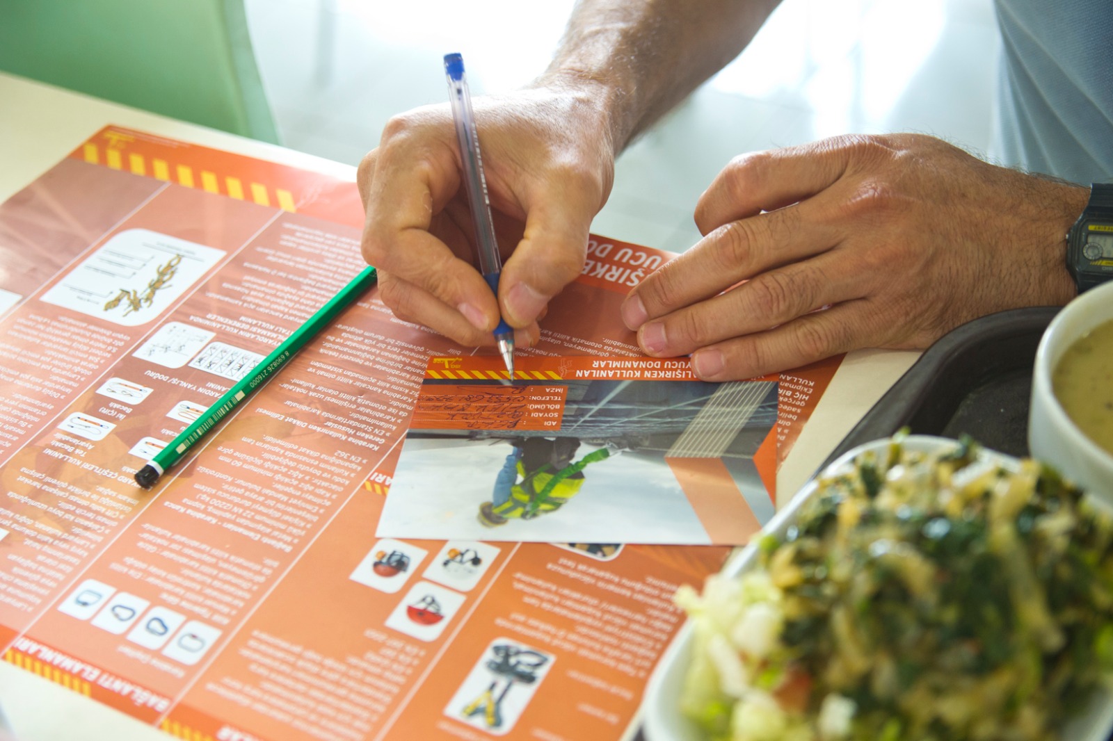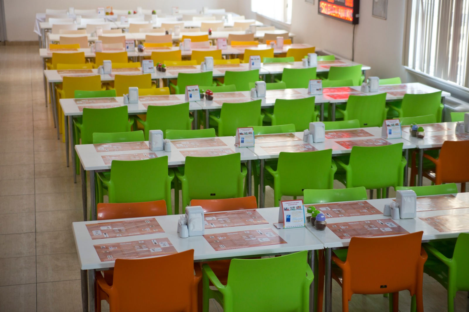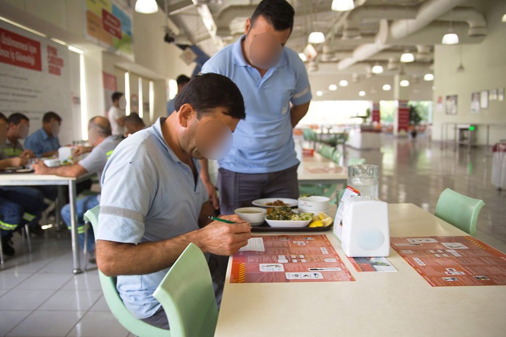 Tesis yemekhanelerinde gerçekleştirilen bu aktivitelerde çalışanların yemek yemek için geçirdikleri zaman, bir eğitim ve bilgilenme vaktine dönüşmektedir. Kararlaştırılan konularla ilgili tarafımızca geliştirilen içerik yemek tepsilerine veya masalara Amerikan servisler şeklinde yerleştirilip; bilgilerle eşleşen sorulardan oluşan soru kartları katılımcılara dağıtılmaktadır. İstenirse sorular çalışanlar tarafından dijital ortamda da yanıtlanabilmektedir. En çok doğru işaretleyen çalışan ödül kazanmaktadır. Yapılan görsel dekorasyon çalışmalarıyla (afiş, roll-up, dönkart vb.) aktiviteye kampanya özelliği katılmaktadır.